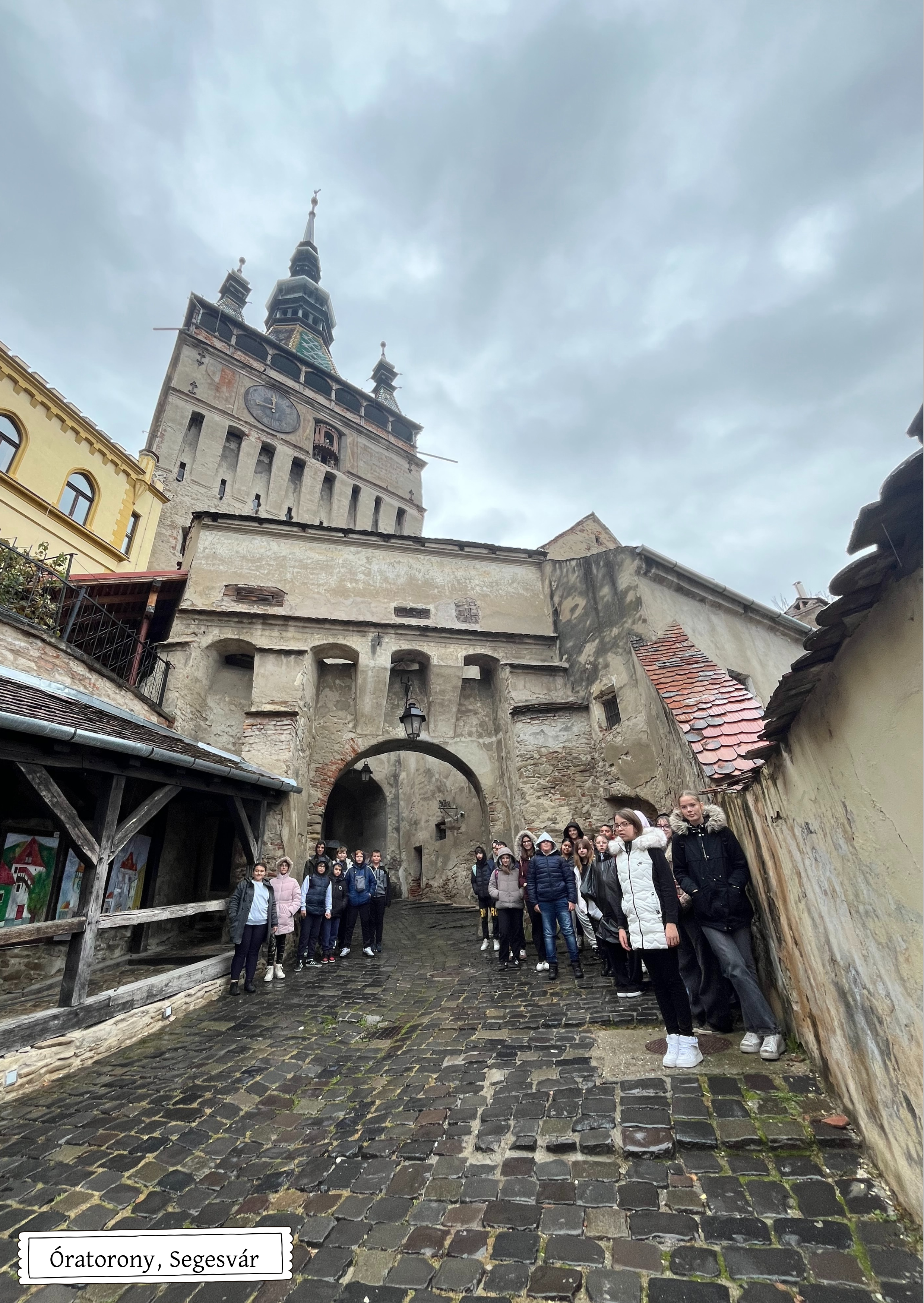 A negyedik nap talán az egész kirándulás legmeghatóbb része volt. Segesváron a csata emlékművénél koszorút helyeztünk el, megemlékezve Petőfi hősiességéről és a szabadságharc áldozatairól. Innen az óvárosba sétáltunk fel – a macskaköves utcák, az Óratorony és a színes házak mintha egy időből kiesett ékszerdobozba zártak volna bennünket.